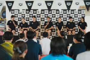 デサントジャパン株式会社が展開するスイミングをコアとする『アリーナ』ブランドは、9月28日(日)に金田スイミングクラブ立川立飛(東京都立川市)において、当社の会員サービス「CLUB DESCENTE(クラブデサント)」会員に向けたスイムクリニックを開催いたしました。ジュニアスイマーからマスターズスイマーまで、様々な年齢のスイマー57名が参加し、鈴木 聡美選手(ミキハウス)、村佐 達也選手(イトマン東京 /中央大学)ら『アリーナ』の契約選手7名による水泳指導やトークショーなど、トップスイマーと直接交流ができるスペシャルなイベントを楽しみました。
