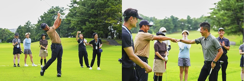 イベントの目玉、シャウフェレ選手とのラウンドでは、シャウフェレ選手がまずお手本として圧巻のショットを披露すると、参加者からは感嘆の声が沸き起こりました。その後ラウンドの合間にそれぞれシャウフェレ選手に質問をしたり、一人ひとりが丁寧なアドバイスを受けながらプレーするなど、参加者全員がプレミアムなひと時を過ごしました。ラウンド後の懇親会では記念撮影やサイン会を実施し、参加者にとってかけがえのない思い出と、ゴルフへの新たなモチベーションに繋がる一日となりました。