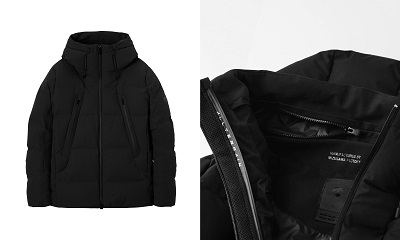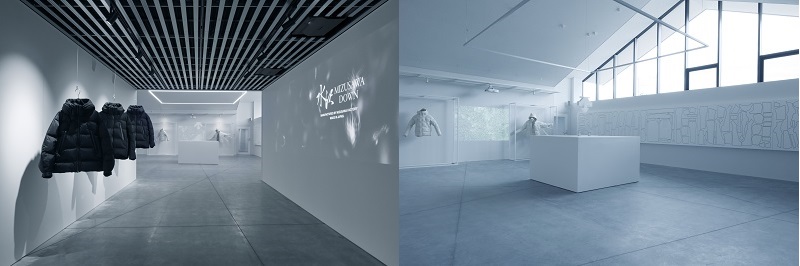 水沢ダウンと、水沢ダウンを構成する163もの裁断パーツを表現したパターンボードを展示し、『デサント』ブランドならではの繊細で難易度の高いモノづくりの世界観を表現しています。
