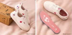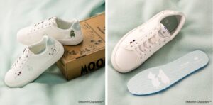 軽量性とボリューム感を両立させたアウトソールが特徴で、スタイルアップだけでなく履き心地にも配慮した設計の「ニーム」のコラボレーションモデルです。穏やかな風景の中で好奇心いっぱいに駆け回るリトルミイをデザインテーマに、そのエネルギッシュな魅力を赤と青と白のトリコロールカラーで表現しました。かかとに花と戯れるリトルミイを、インソールには駆け回るリトルミイのシルエットをあしらいました。
