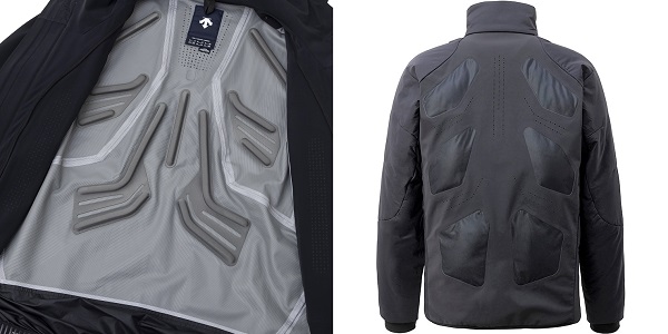 スキージャケットは、ハードシェルジャケットとミドルレイヤージャケットに分かれており、気温や使用状況に応じて、それぞれ単体での着用も、組み合わせての着用も可能な3in1仕様になっています。ハードシェルジャケットは、衣服内の蒸れを解消したいという選手からの要望もあり、当社研究開発拠点「DESCENTE INNOVATION STUDIO COMPLEX(DISC)OSAKA」で開発した、蒸れで不快を感じる箇所に空気の流れを促す換気構造を搭載した「エアロストリーム」シリーズのジャケットです。ミドルレイヤージャケットには温かさを感じやすい部分のみに中わたを配置し、効率よく保温する独自の機能設計「スマートパディング」を採用し、「暖かさを閉じ込める保温性」と「蒸れを防ぐ透湿性」の両方を兼ね備えています。