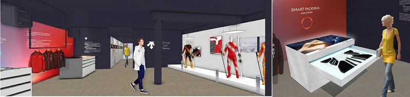 当社の研究開発拠点「DISC(DESCENTE INNOVATION STUDIO COMPLEX) OSAKA(ディスクオオサカ)」などで生み出されたテクノロジーを搭載したアイテムを紹介します。独自のパターン技術や機能性など、『デサント』のノウハウやこだわりを搭載した製品を展示します。