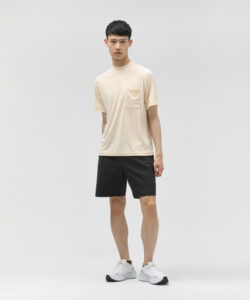 しなやかなストレッチウーブン素材を使用したトレーニングショートパンツはウエストを自在に絞れるウエストスピンドル仕様。両サイドポケットの端が水抜け処理された水陸両用のショートパンツで、はっ水性によりアウトドアレジャー時に気になる水を弾きます。パンツ背面はふらし仕様のベンチレーションになっており、夏場に気になるお尻周りの蒸れ軽減と水抜けを考慮したデザインになっています。
