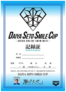 大会の中止やプールで泳げない日が続き、特にジュニアスイマーの皆さんはなかなか練習の成果やいつも通りの力を発揮する場が少なくなっていると思います。自分にも何かできないかなと思い『アリーナ』と一緒に考えて、「DAIYA SETO SMILE CUP‐ARENA ONLINE SWIM MEET‐」を開催しようと思いました。今のこの状況下での目標設定は非常に難しいと思います。やはりコツコツと毎日出来ることをやることによって、いざ大会が始まった時に0.1秒でもライバルとの差を詰めたり離したりできると思います。月ごとでもいいので「この月はこのタイムを出す」ということを掲げてコツコツとやっていきましょう。ぜひ1人でも多くの皆さんに参加していただけるよう自分も大会を盛り上げていきますので、皆さんの参加を楽しみにしています。