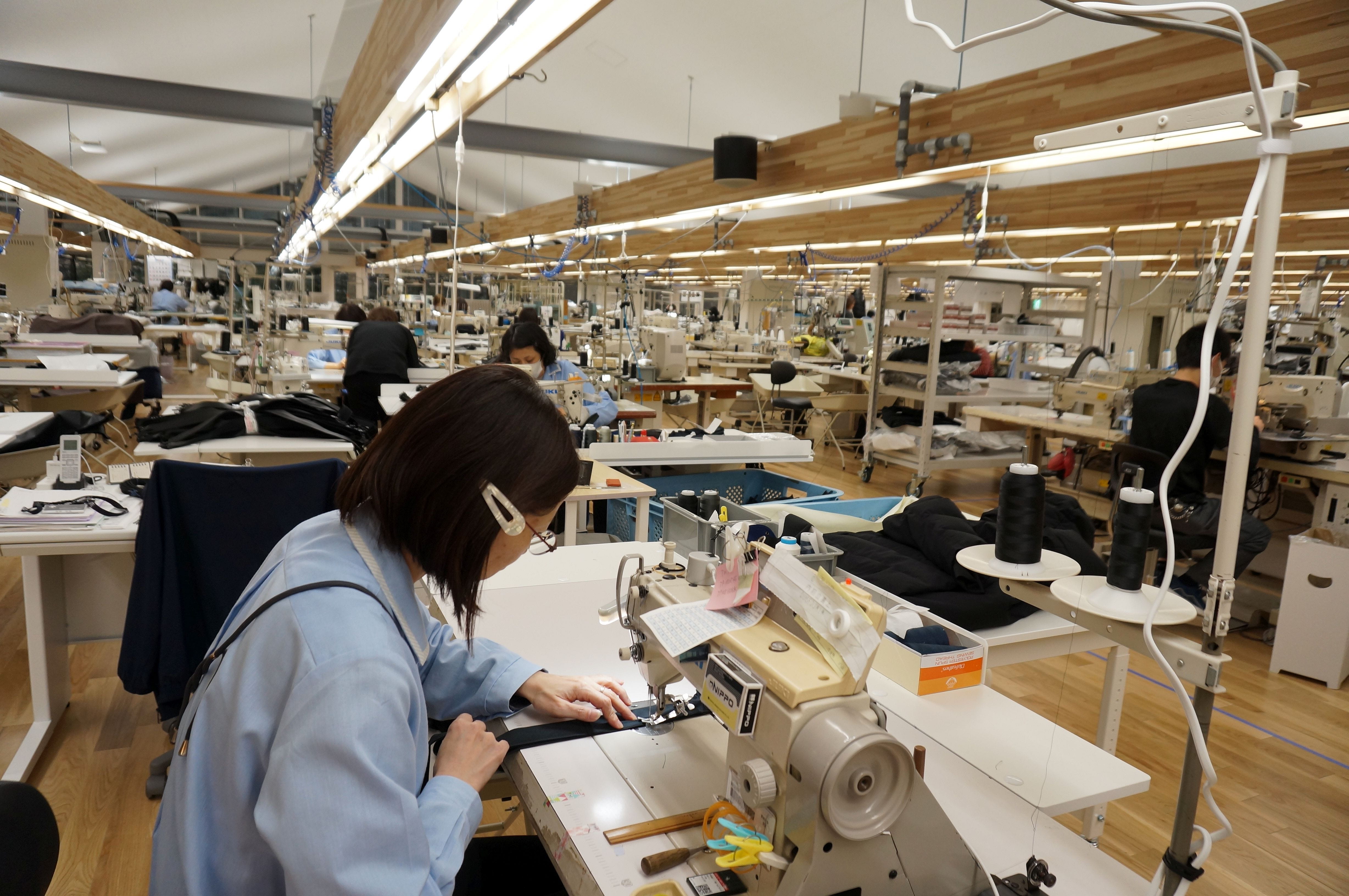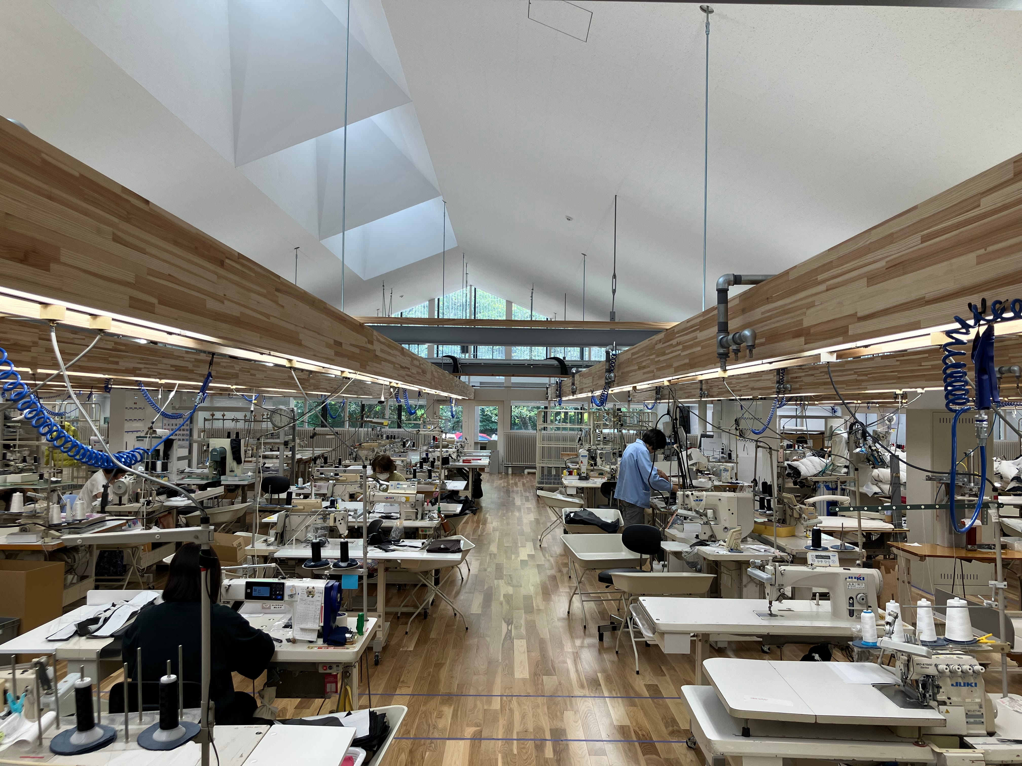 配線などをまとめた「ファクトライン」が機能的な空間を作り上げる縫製エリア