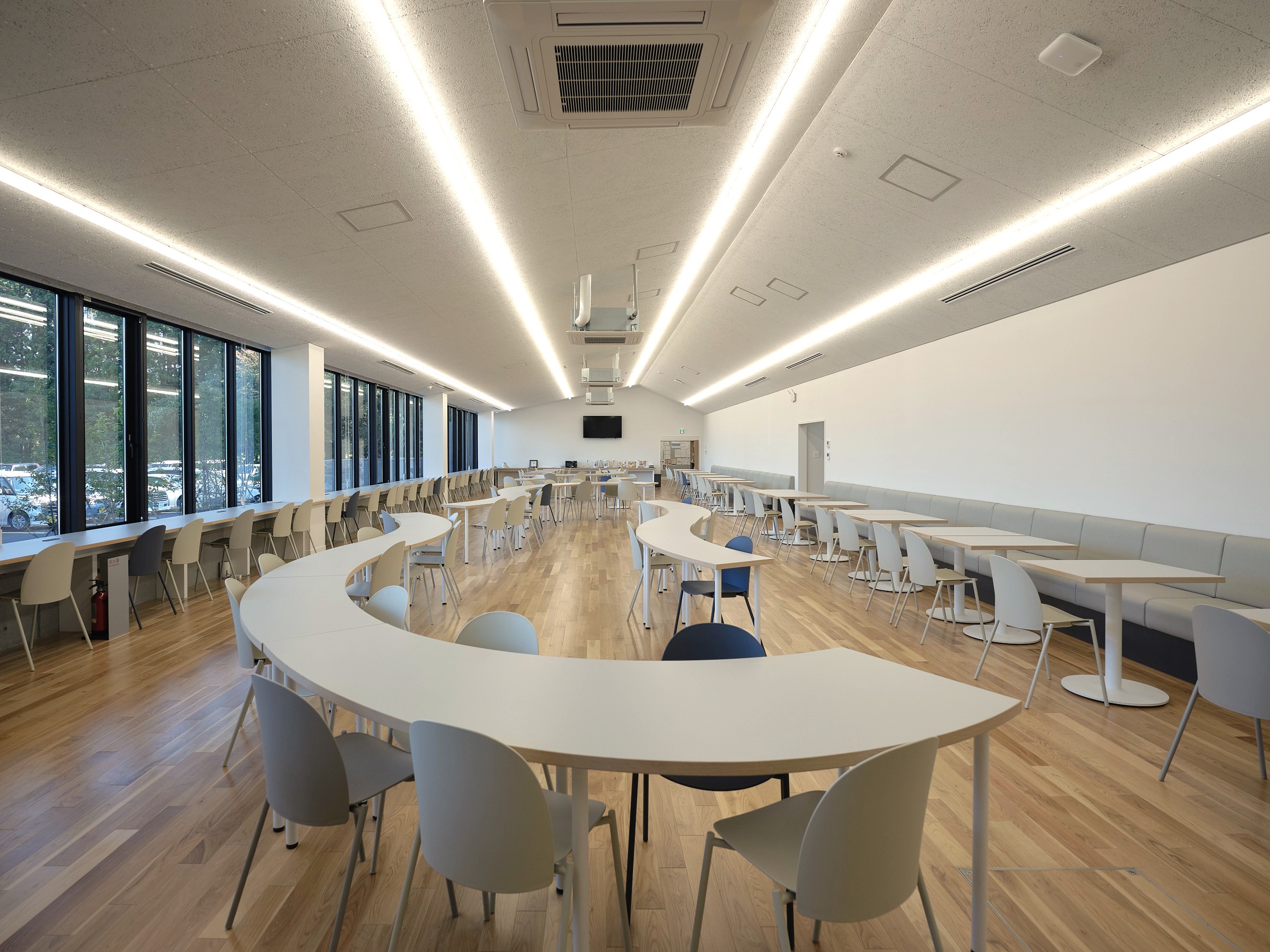 食堂や休憩室にはグループで歓談できる席や一人の時間を過ごせる席など様々なスペースを設けている