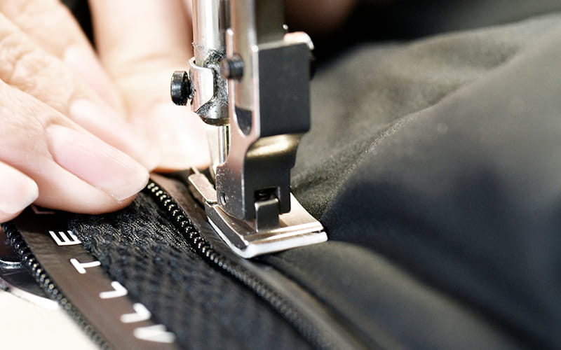 伸縮性のある生地を縫製する様子