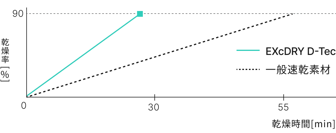 「エクシードライDテック」は、スポーツに最適な速乾性を実現。