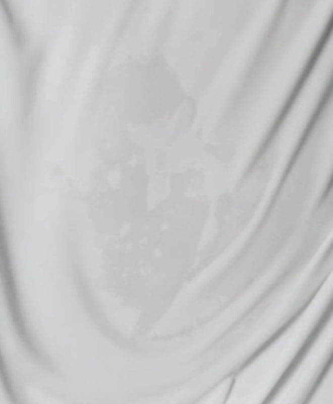 一般的なポリエステルの素材(左)、エクシードライDテック(右)に水を0.6ml滴下した後の速乾性比較