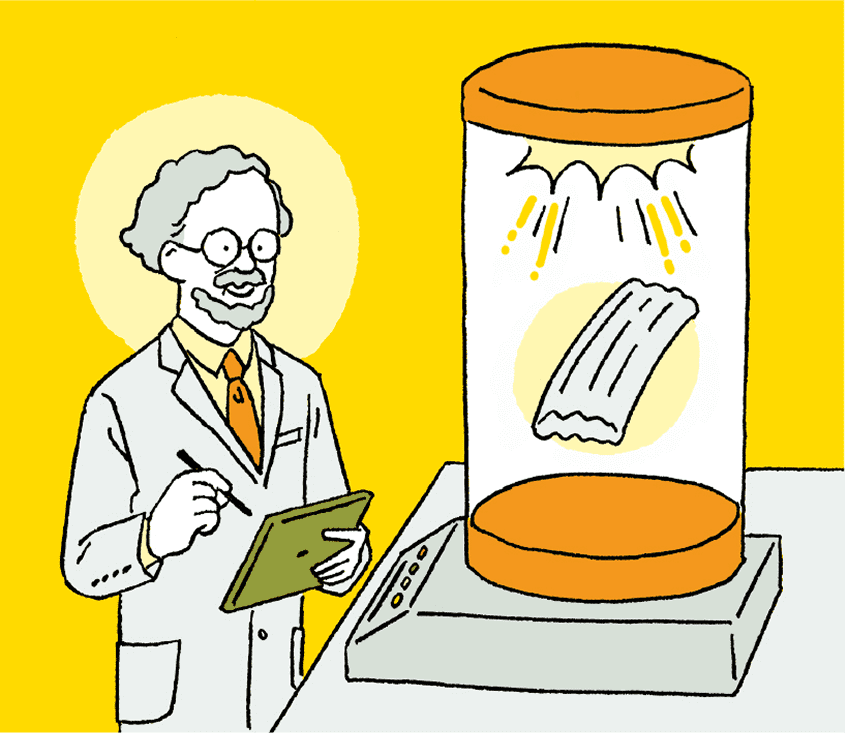 ヒートナビの糸の中には、全波長を熱に変える炭素系無機物質が入っています。アイテムの特性に応じて特殊扁平断面を採用することで、光が当たる表面積を多くし、蓄熱性を大きくすることを実現しました。